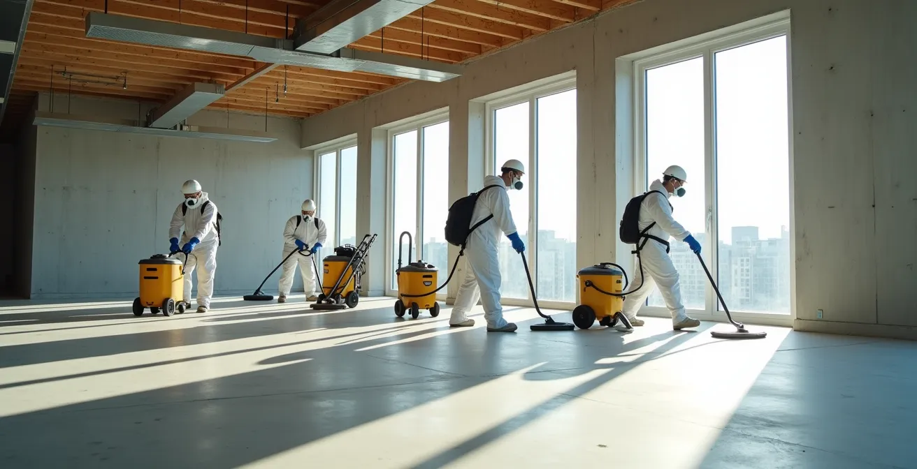 - Le nettoyage de fin de chantier n’est pas une corvée mais une expertise technique qui protège la santé (silice) et l’intégrité des matériaux neufs.